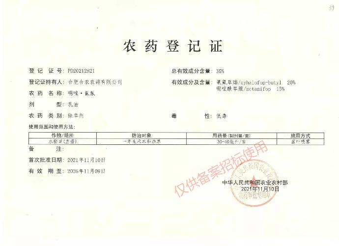 - 适宜温度在20-33℃之间发挥最好药效,施药前排水,药后1-2天回水,且勿淹秧心。