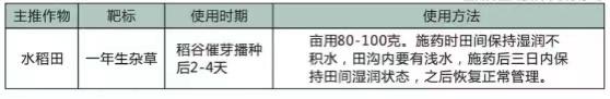 1、使用安全:内含高含量安全剂,对催芽具根的稻谷安全,可放心用于水稻直播田封闭除草。